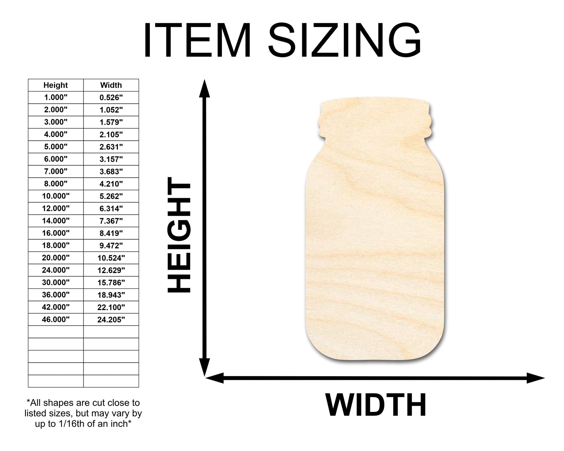 Unfinished Wood Mason Jar Shape - Rustic Country Craft - up to 46" DIY