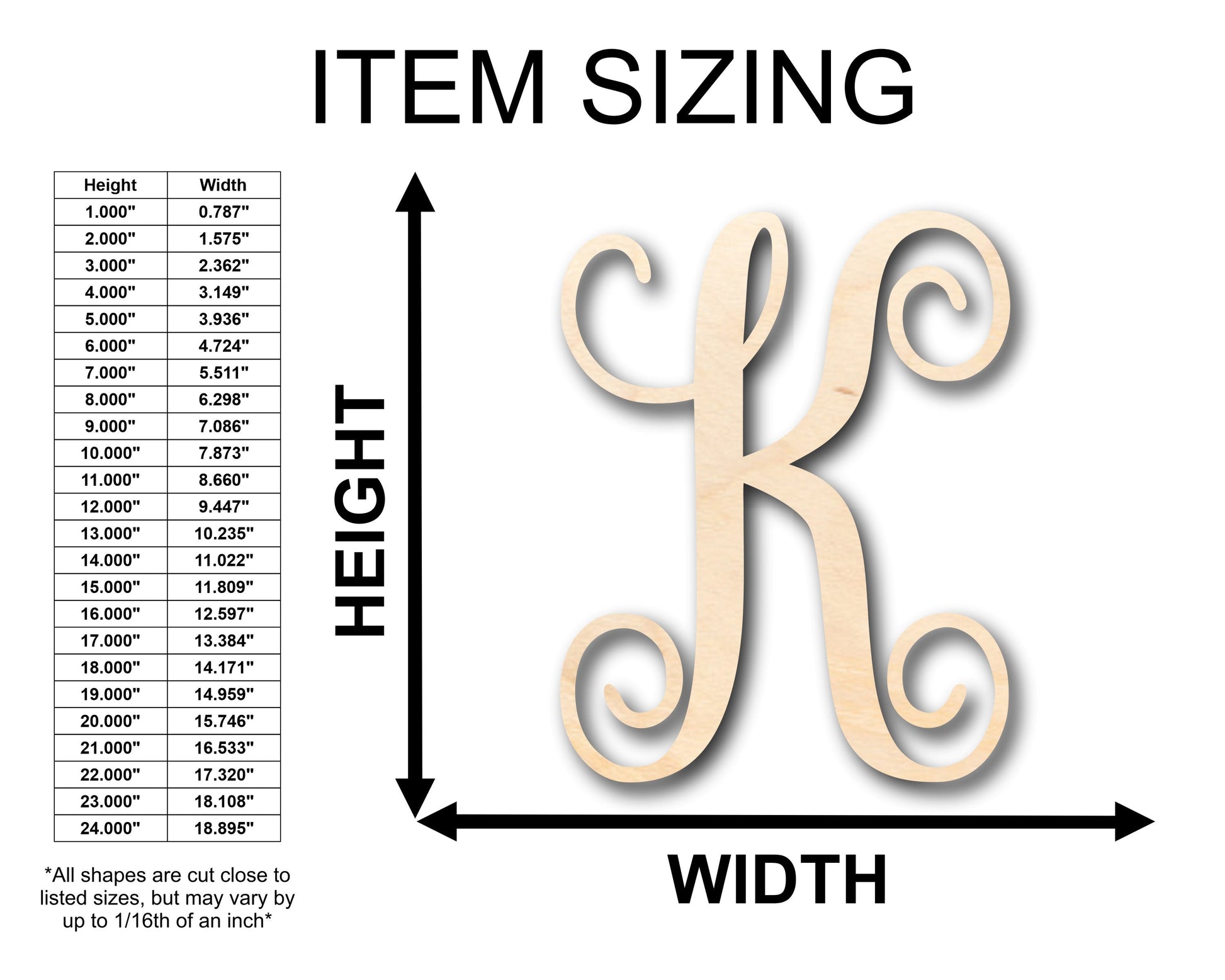 Unfinished Wood Monogram K Shape - Craft - up to 46" DIY