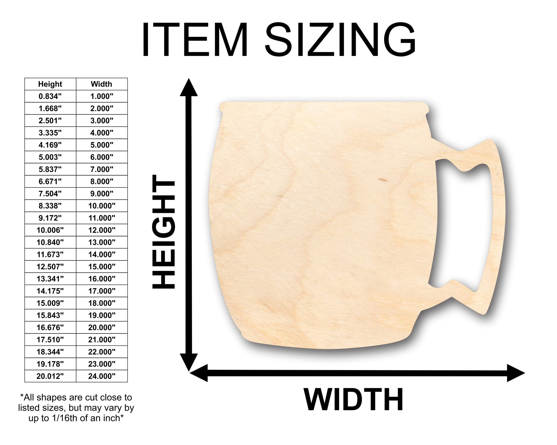 These Unfinished wood crafts are cut from 1/8 (3mm), 1/4 (6mm) or 1/2 (12mm) inch (MM) cabinet grade Baltic birch plywood. If you're interested in another thickness please message us!