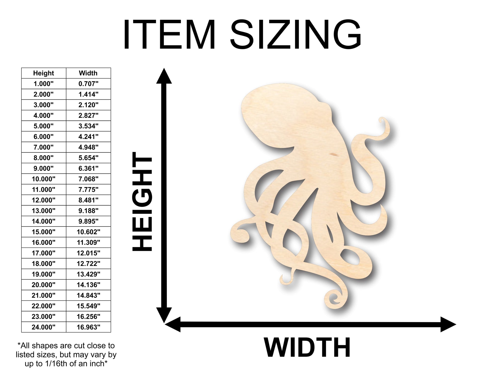 Unfinished Wood Octopus Shape - Craft - up to 46" DIY