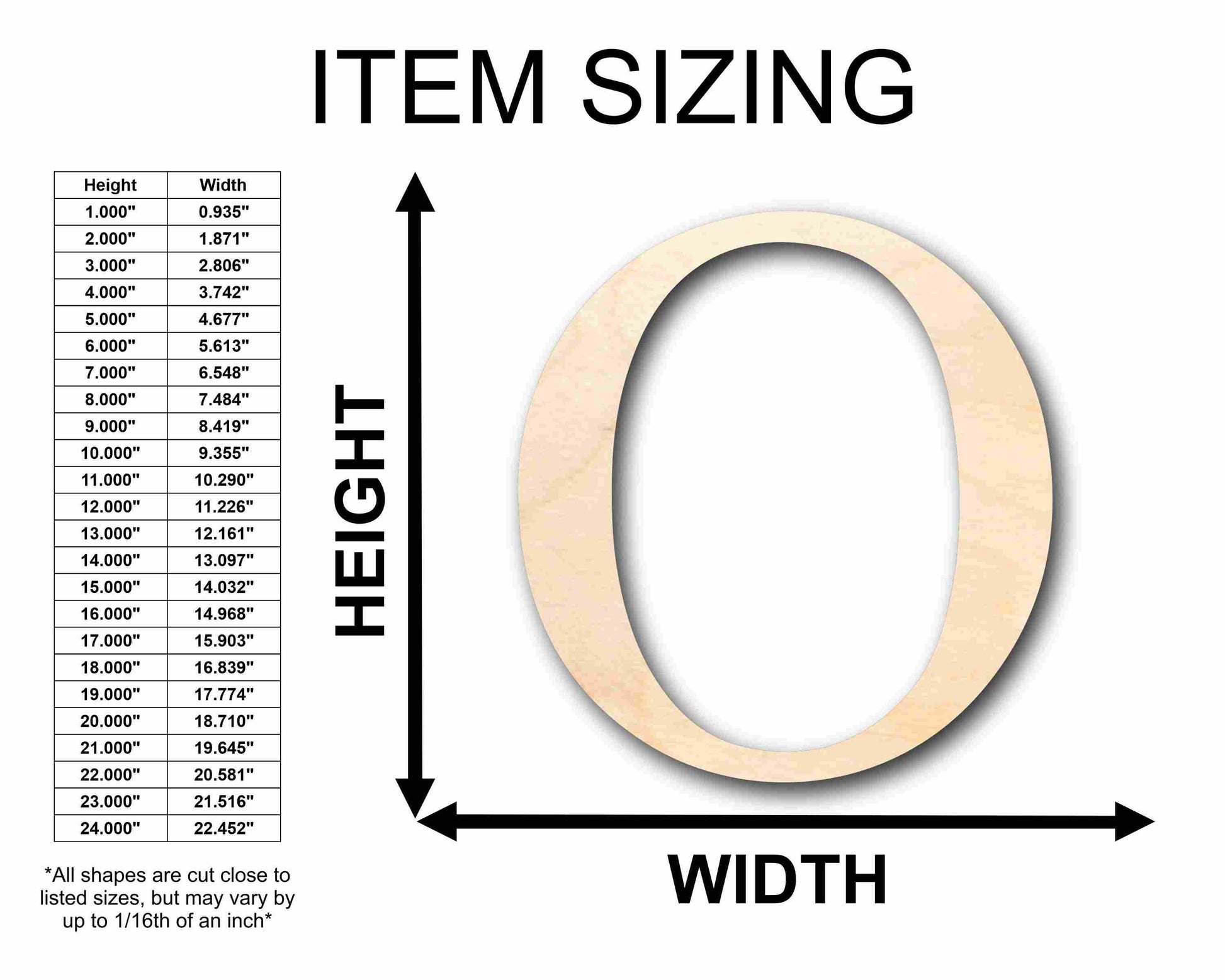 Unfinished wood shapes are available from 3" up to 48" (Some intricate shapes will not be available at smaller sizes)