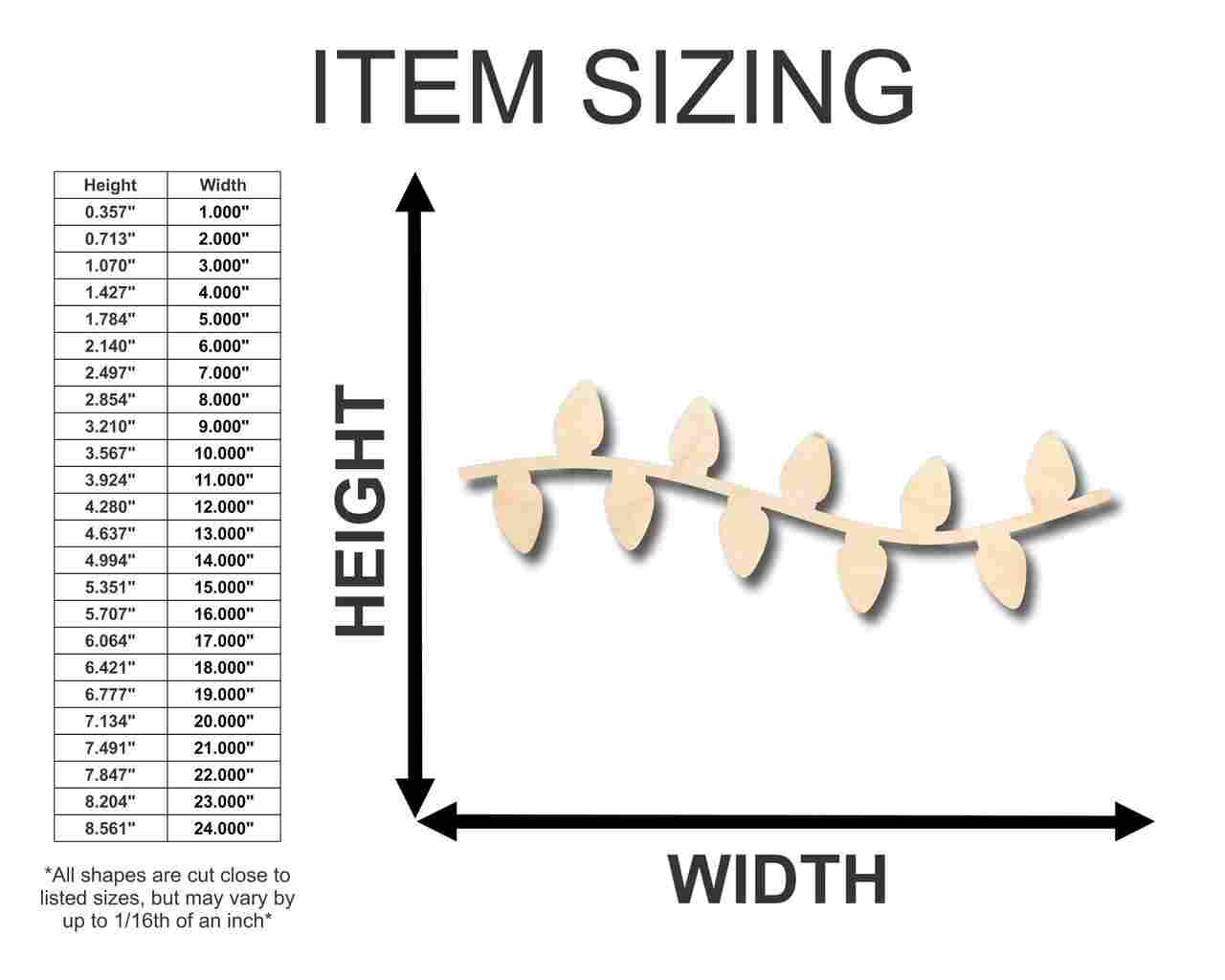 Create beautiful holiday home decor with wood string of lights shape. Christmas light wood shapes are available in sizes up to 24” are perfect for any project. String light wood shapes come as sanded natural wood with lightly burned edges from cutting and ship within 24 hours!