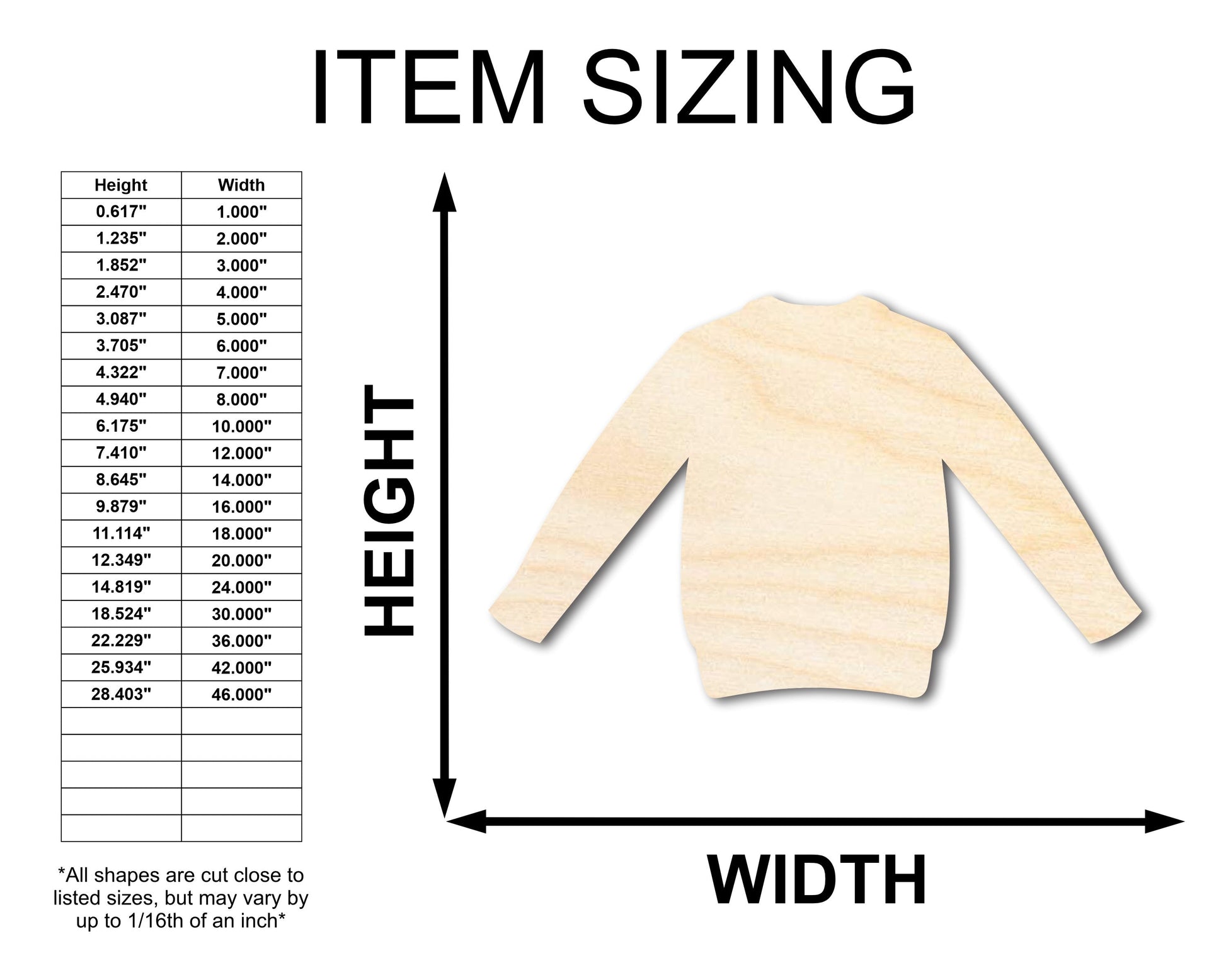 Unfinished Wood Sweater Shape - Clothing Craft - up to 46" DIY