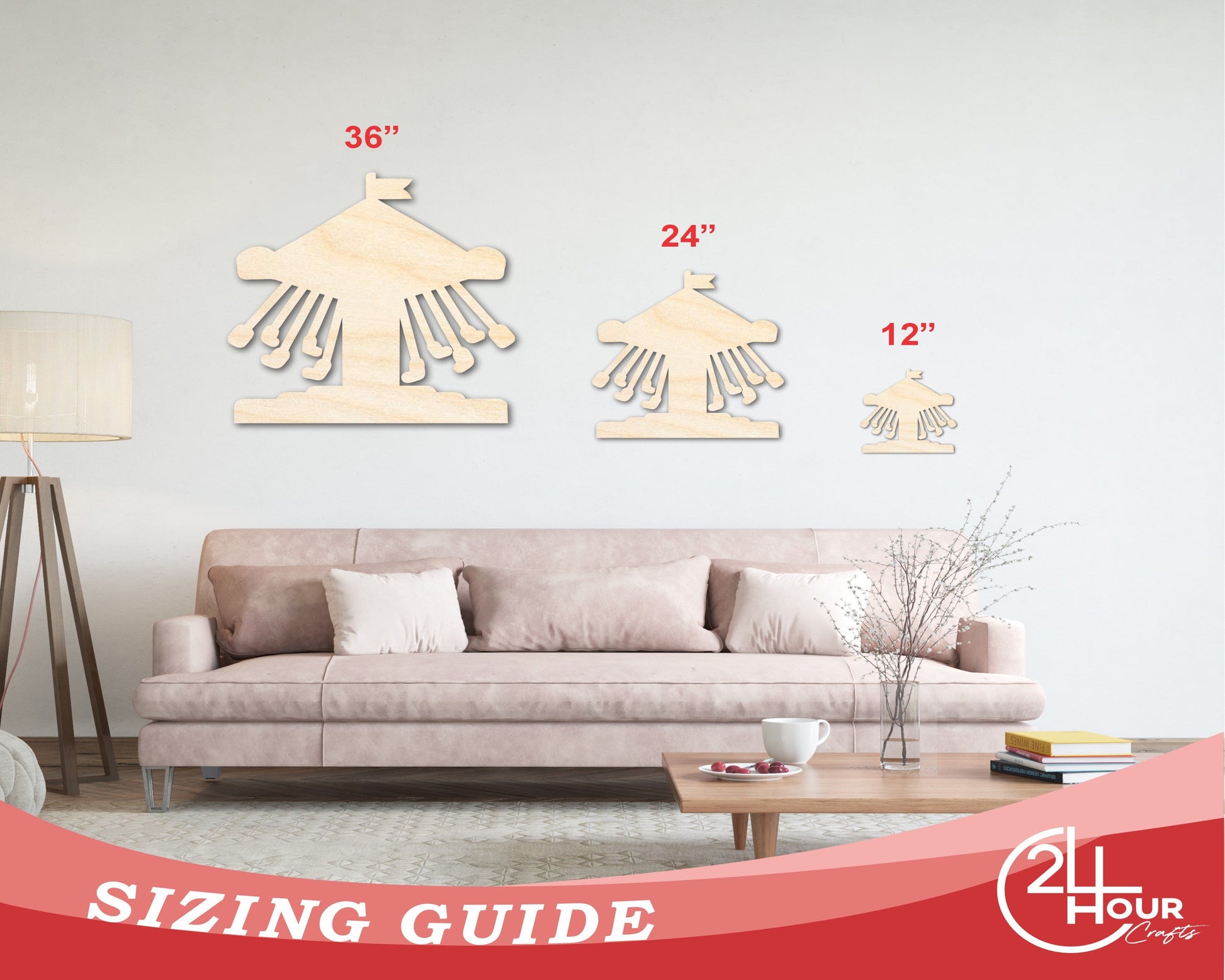 Unfinished Wood Swings Ride Shape | Amusement Park | Craft Cutout | up to 46" DIY