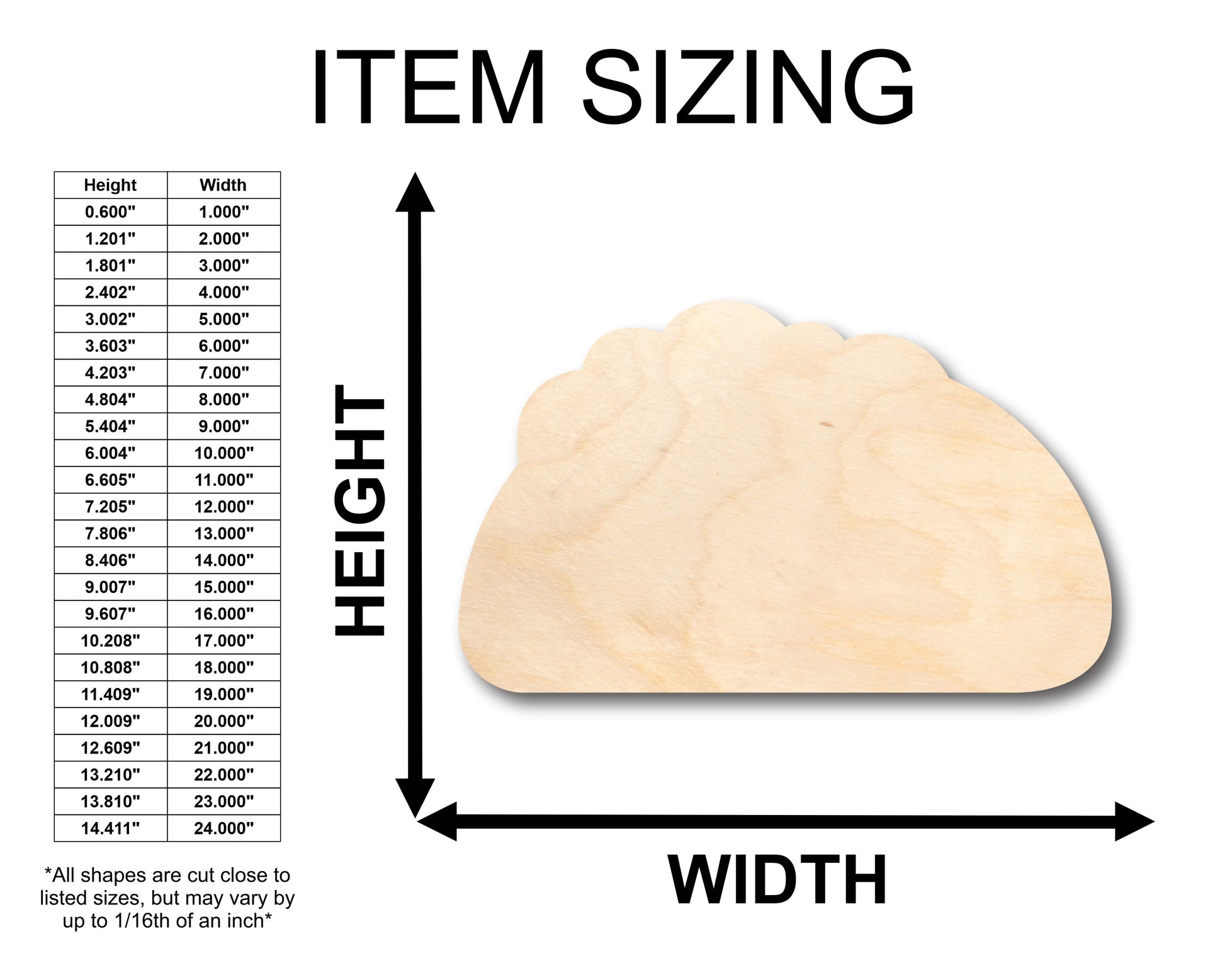 These Unfinished wood crafts are cut from 1/8 (3mm), 1/4 (6mm) or 1/2 (12mm) inch (MM) cabinet grade Baltic birch plywood. If you're interested in another thickness please message us!