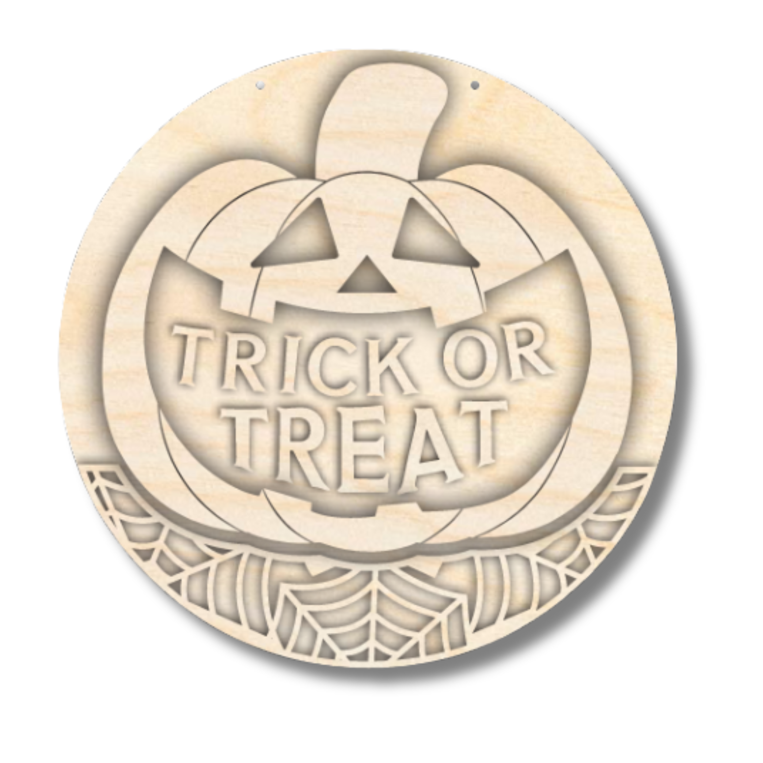 Unfinished Wood Trick or Treat Jack-o-Lantern Door Sign Kit | Wood Craft Cutouts | 1/4" Thick |
