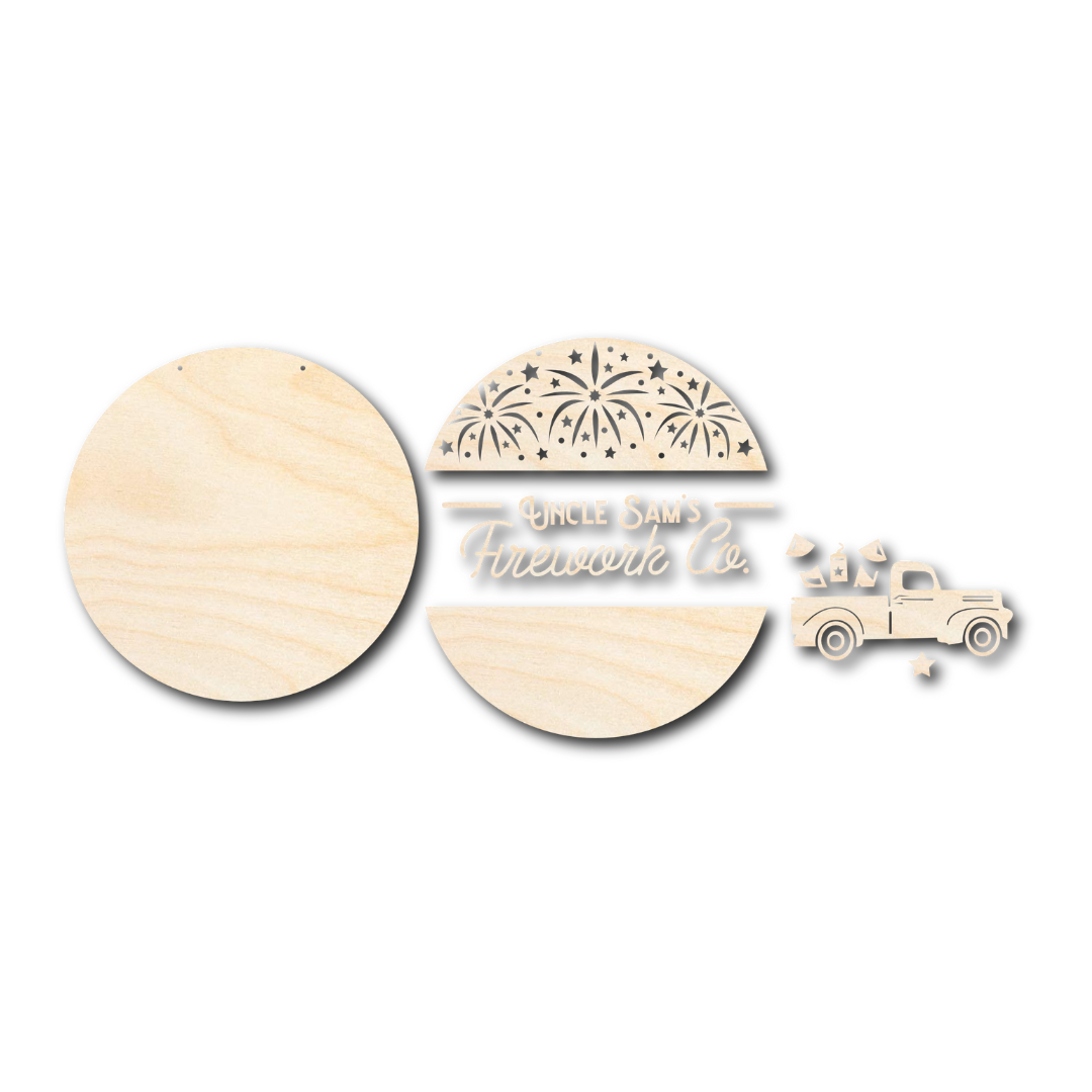 Unfinished Wood Uncle Sam's Fireworks Door Sign Kit | Wood Craft Cutouts | 1/4" Thick |