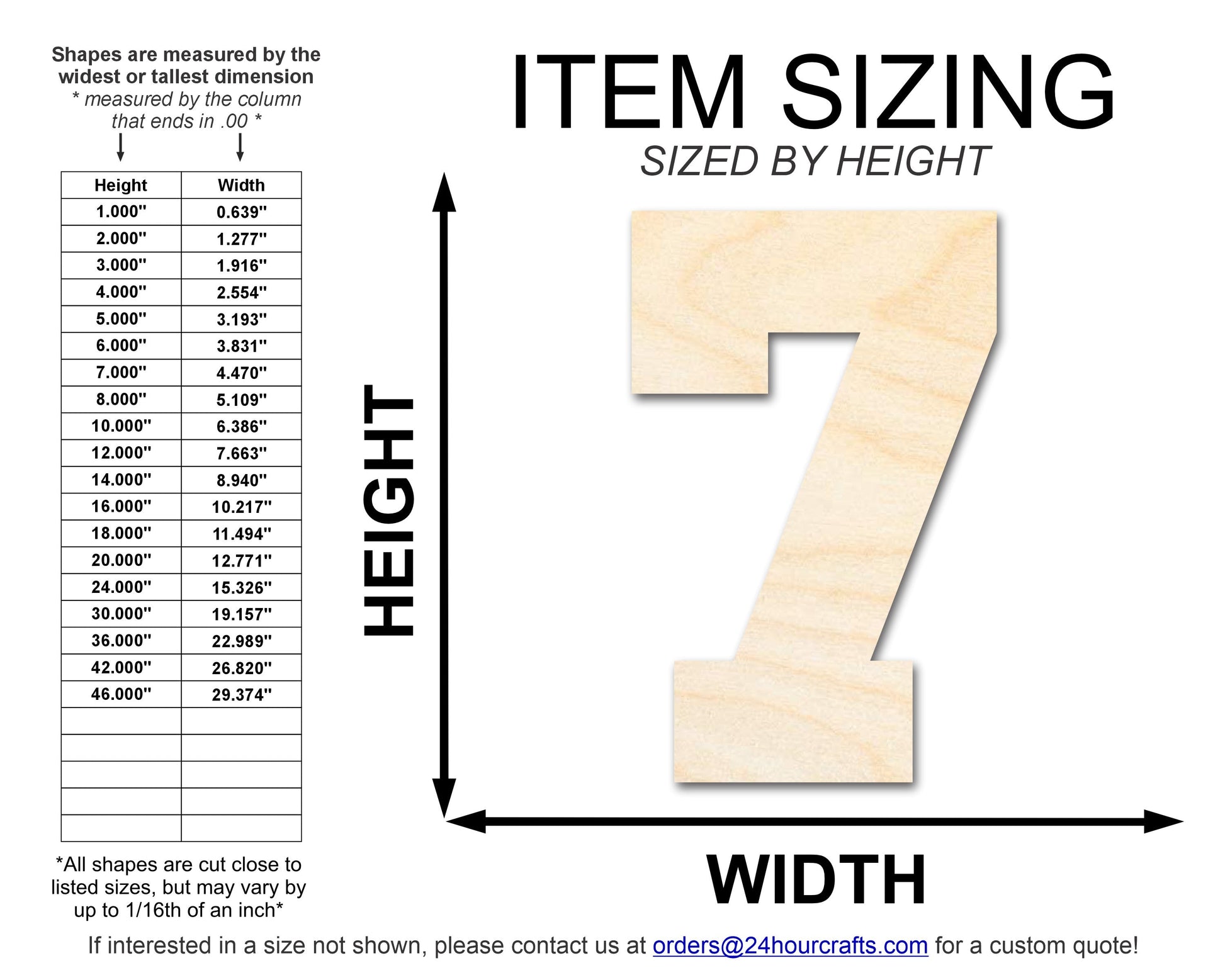 Unfinished Wood Varisty Number Seven Shape | DIY Craft Cutout | up to 46" DIY